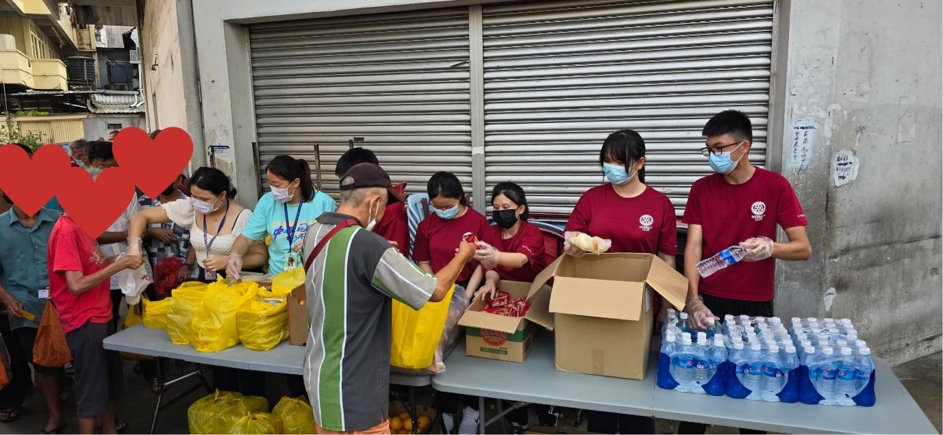 这次的派饭活动是我第一次在幼扶轮学会做得最有意义的活动。到派饭地点的时候,看到那些可怜兮兮,无家可归的叔叔阿姨们,紧张和兴奋感瞬间释放了出来。发现到那些领到物资的老人都面带微笑地说“谢谢”, 让我内心激发了一个目标,就是希望我有能力的时候尽量帮助那些没有家,没有亲人,没有能力的弱势群体。