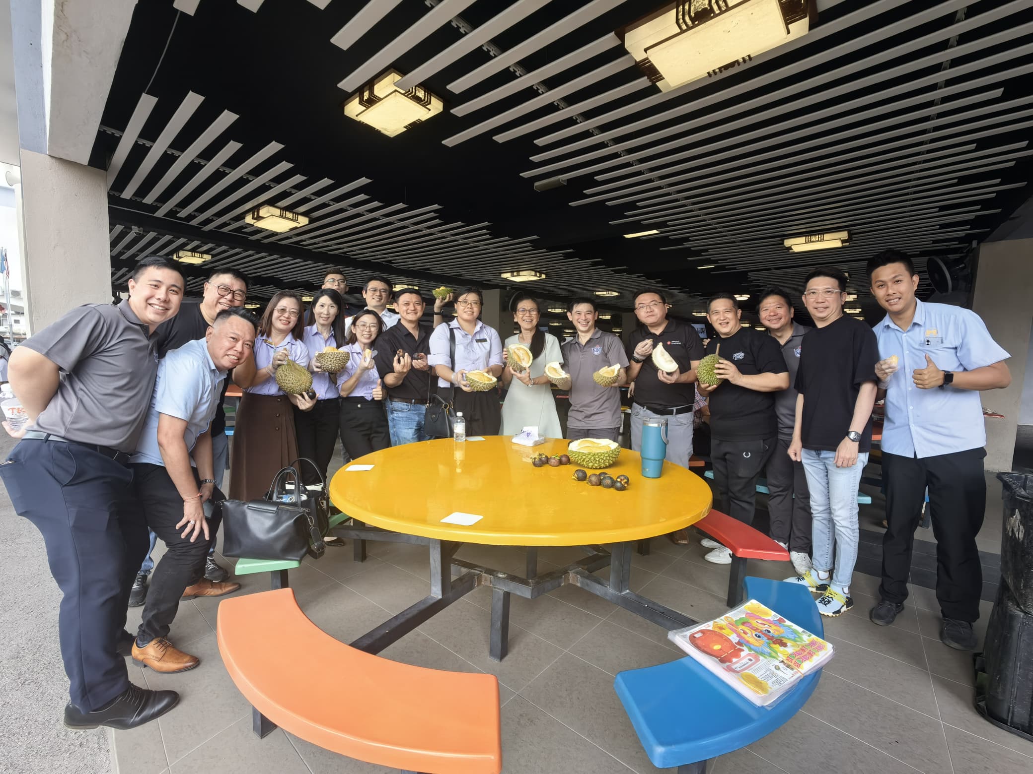 当天放学后,除了教职员以外,董、家、校三机构理事亦一同齐聚在本校食堂,共同享用榴莲。同时,非常荣幸的迎来马来西亚社会企业家基金会会长拿督曾华健及该会同仁共享,大家集聚一堂乐融融,充分体现了华教志业不分你我齐心奉献。