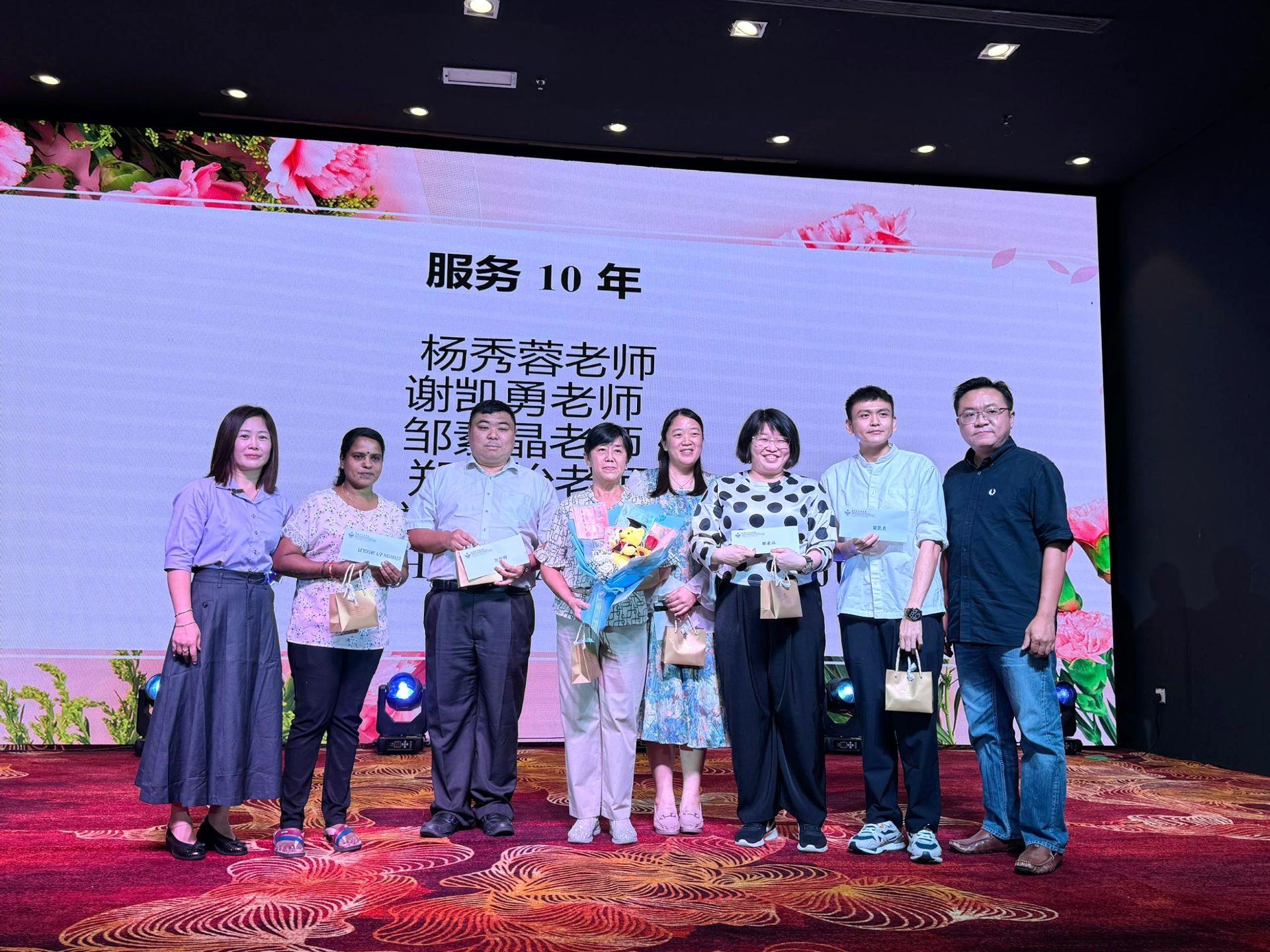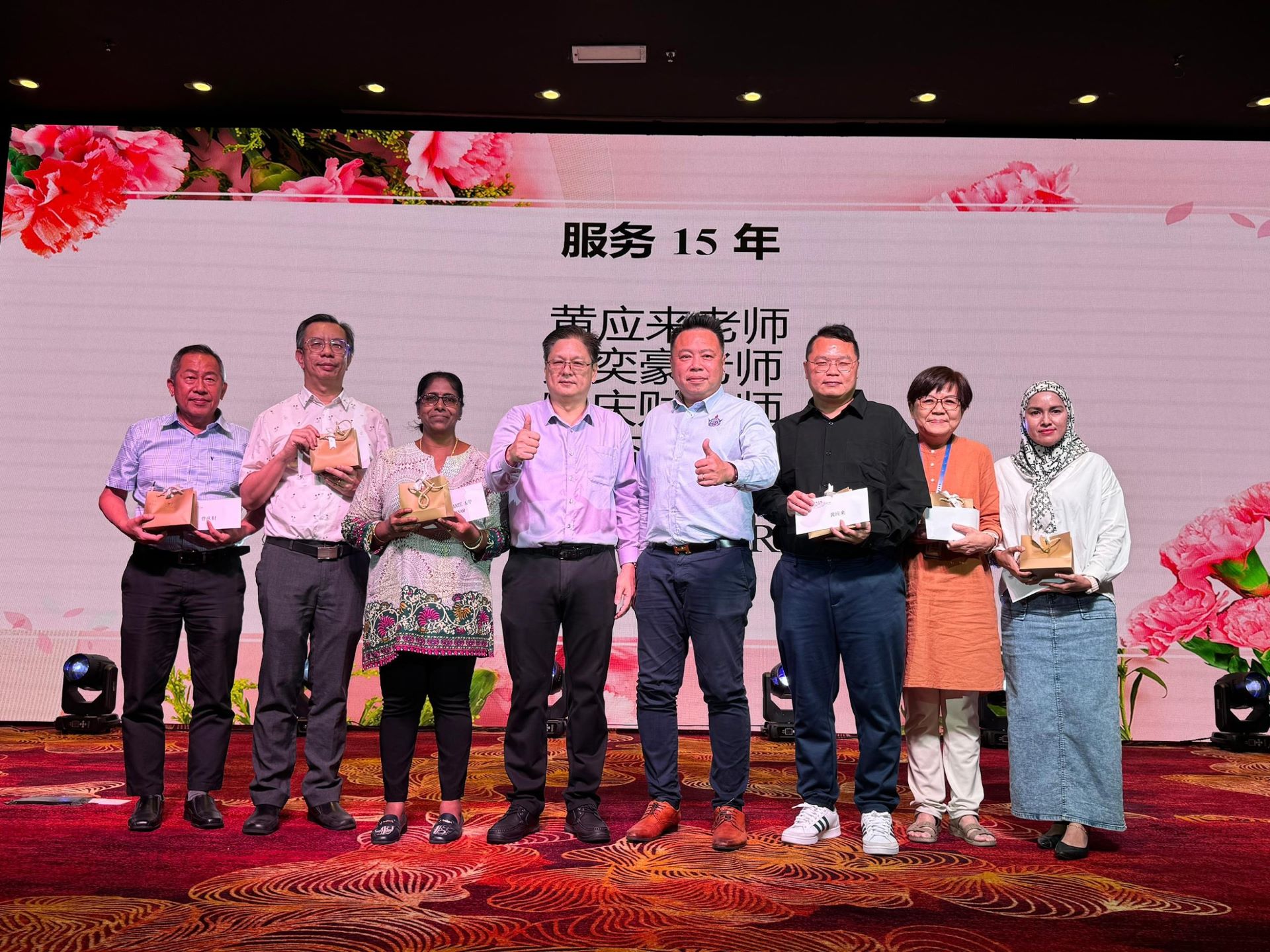 本次教师节午宴上也颁发了统考奖励金与长期服务奖于相关教职员。为了增添气氛,本次午宴也设有抽奖环节,并邀请颜妏慈校友与学生们带来精彩的独唱、合唱与舞蹈表演,三机构齐聚一堂,同欢共庆。