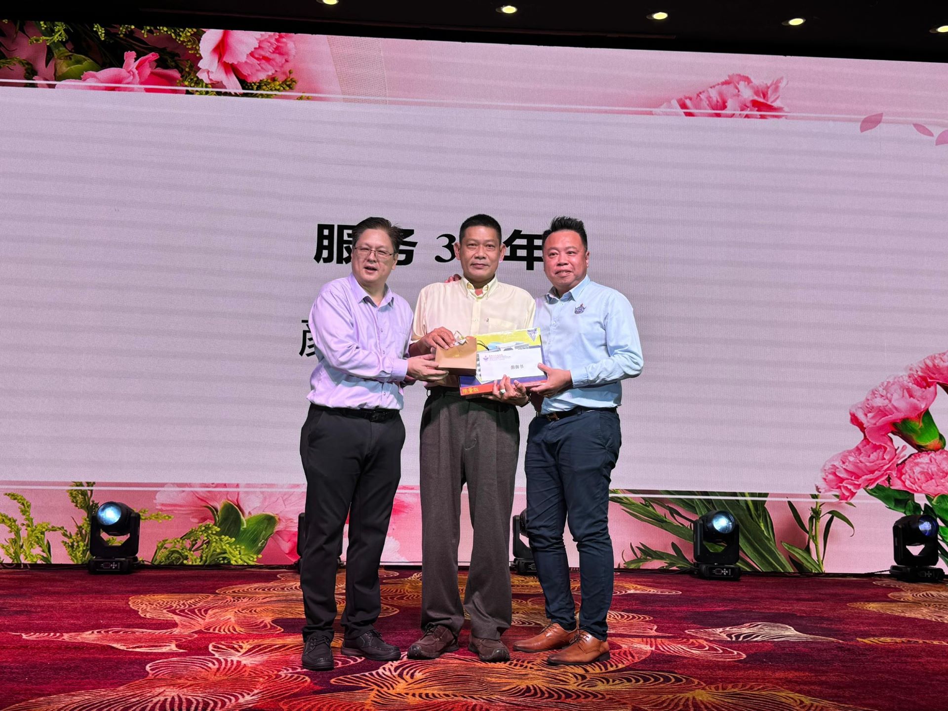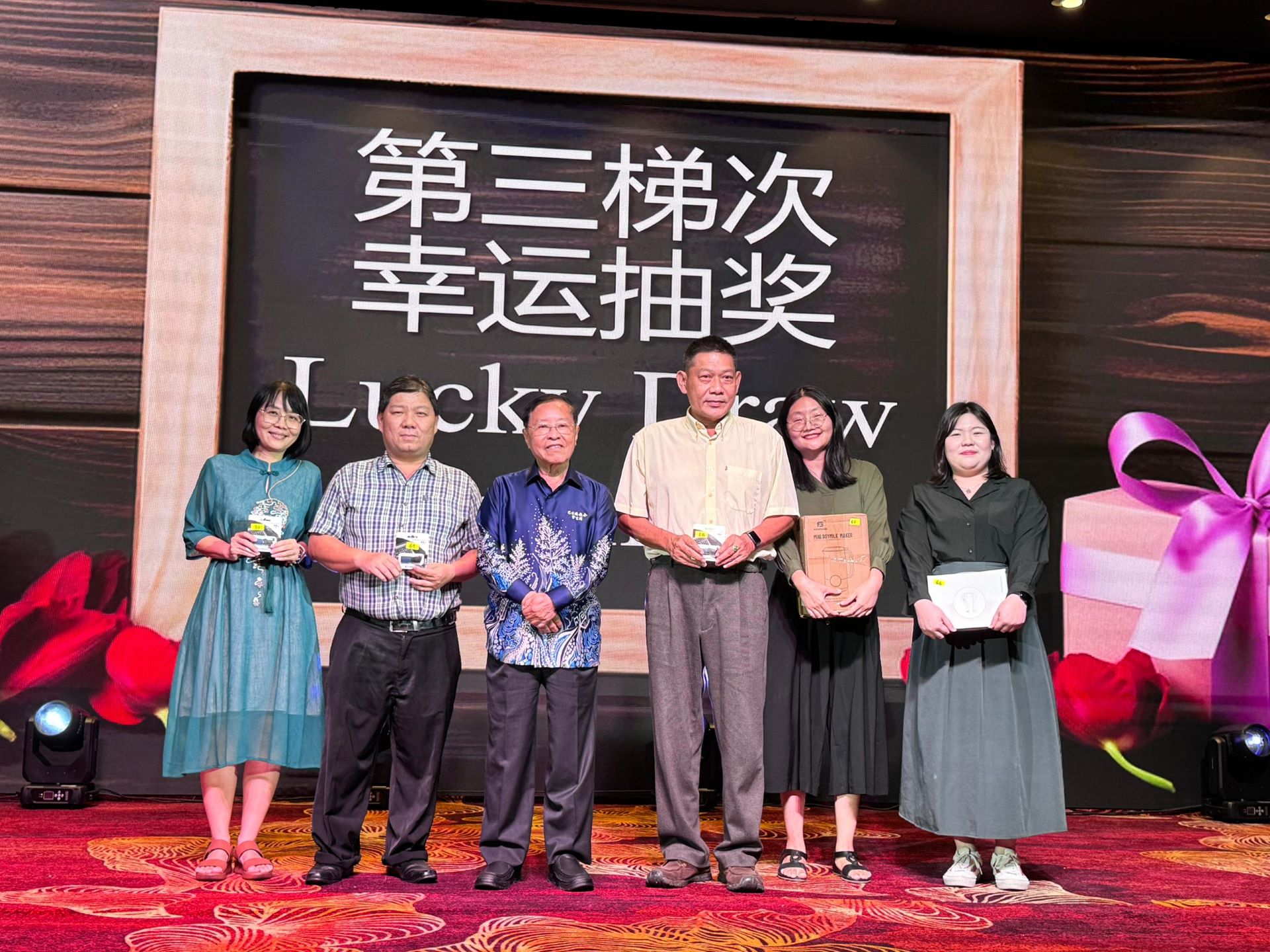 家教协会主席李勇陞先生向每位辛勤付出的教职员致以诚挚的感谢。他表示,在本校教职员的细心栽培下,学生们茁壮成长,拥有了更美好的未来。他也特别感谢董事长拿督蔡崇伟太平局绅、副董事长黄玉枝先生、校友会与家教协会赞助了本次午宴的伴手礼与抽奖活动。