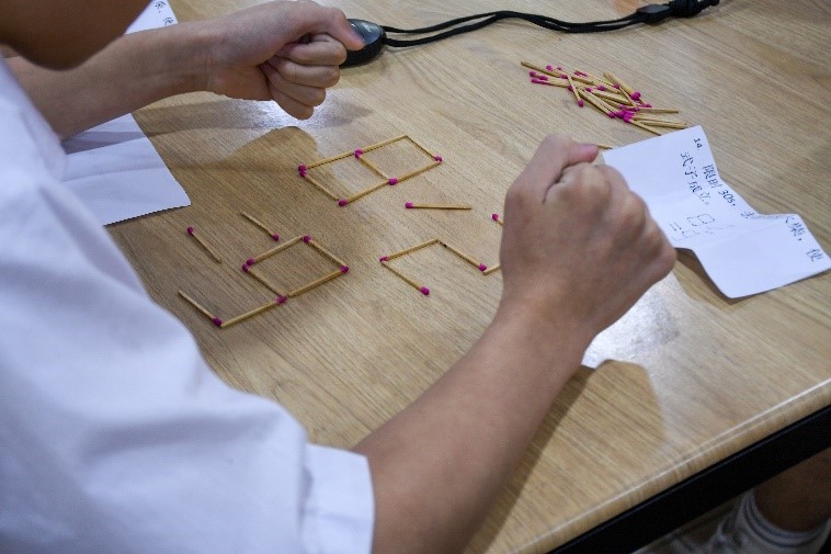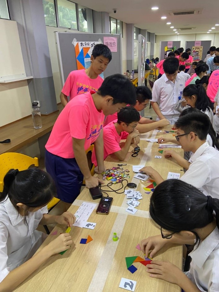 本次活动采用闯关的模式进行,场地内设有10个游戏关卡,参与者在通过游戏关卡后将获得该关卡的盖章,集满10个盖章则可兑换一个精美笔记本。本次活动的游戏关卡皆由高一理信班的同学们与数学组的老师们共同设计,通过游戏的方式,有趣地锻炼学生的数学能力,关卡分别为:奇偶笑跳跳,TIC TAC TOE,数独,索玛迷阵,“巧”夺天工,数度,变幻火柴,幸运点,幂战棋和IQ题。