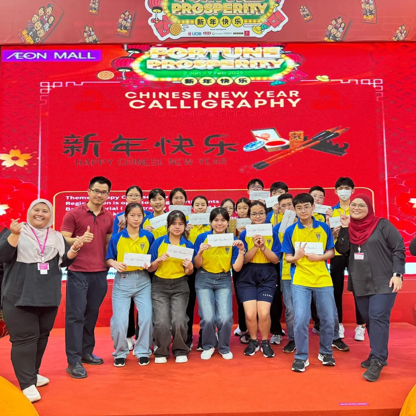 我校书法研习社于2025年1月19日,假AEON MALL Bukit Tinggi,参加由该商场举办的Program Pertandingan Kaligrafi Bersempana Sambutan Tahun Baru Cina书法比赛。本次活动我校书法研习社共16位会员参加并荣获以下奖项。