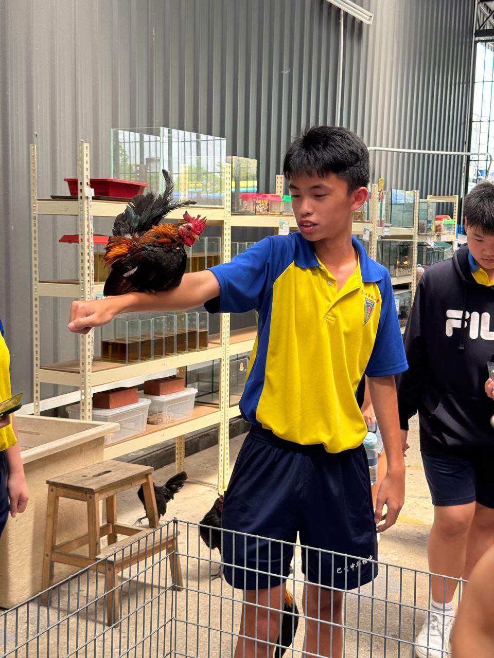 在参观完水生生物区后,我们还去看了蜥蜴和羽色七彩缤纷的鸡,我的朋友还把玲珑鸡放在他的手臂上,让我们顿时觉得很震撼,因为他有勇气让鸡站在手臂上。此外,我们也看到了许多可爱的鸭子和兔子等。让我觉得很幸运的事情之一是我看到了他们最珍贵的猴子,它是店主的吉祥物,也是镇店之宝。