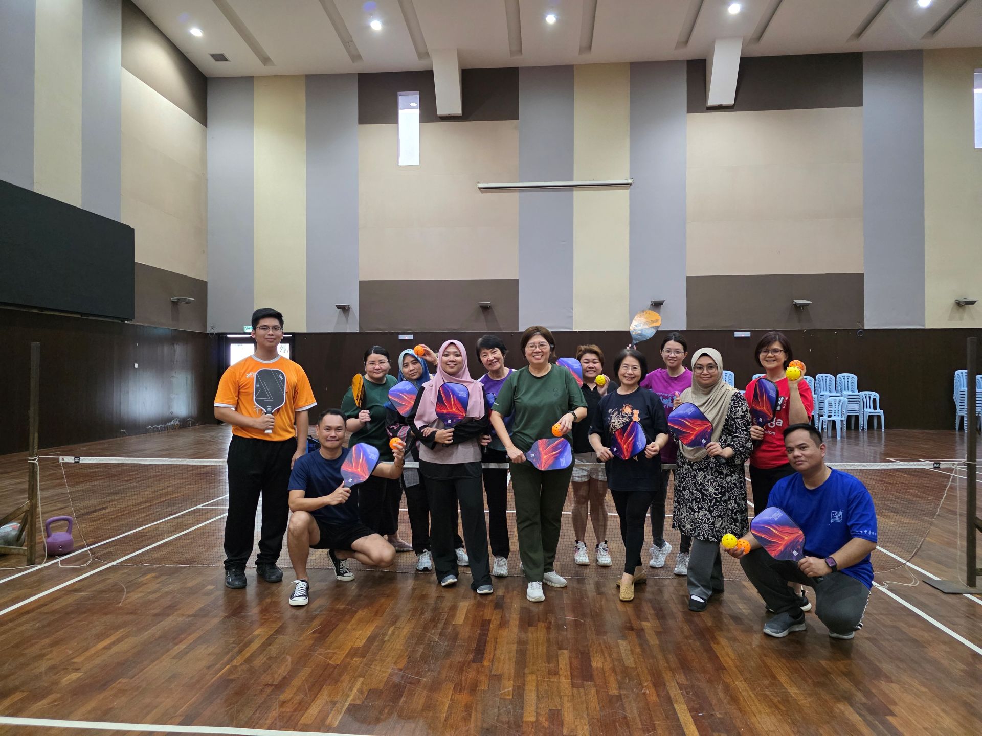 Para guru bermain dengan gembira dan berasa seronok bermain Pickleball. Selepas itu, penyampaian cenderahati kepada jurulatih diadakan sebagai tanda penghargaan kepada beliau. Sebelum kami bersurai, kami mengambil ganbar bersama-sama sebagai kenangan manis. Moga-moga tahun hadapan kami berpeluang untuk mengadakan permainan Pickleball lagi.
