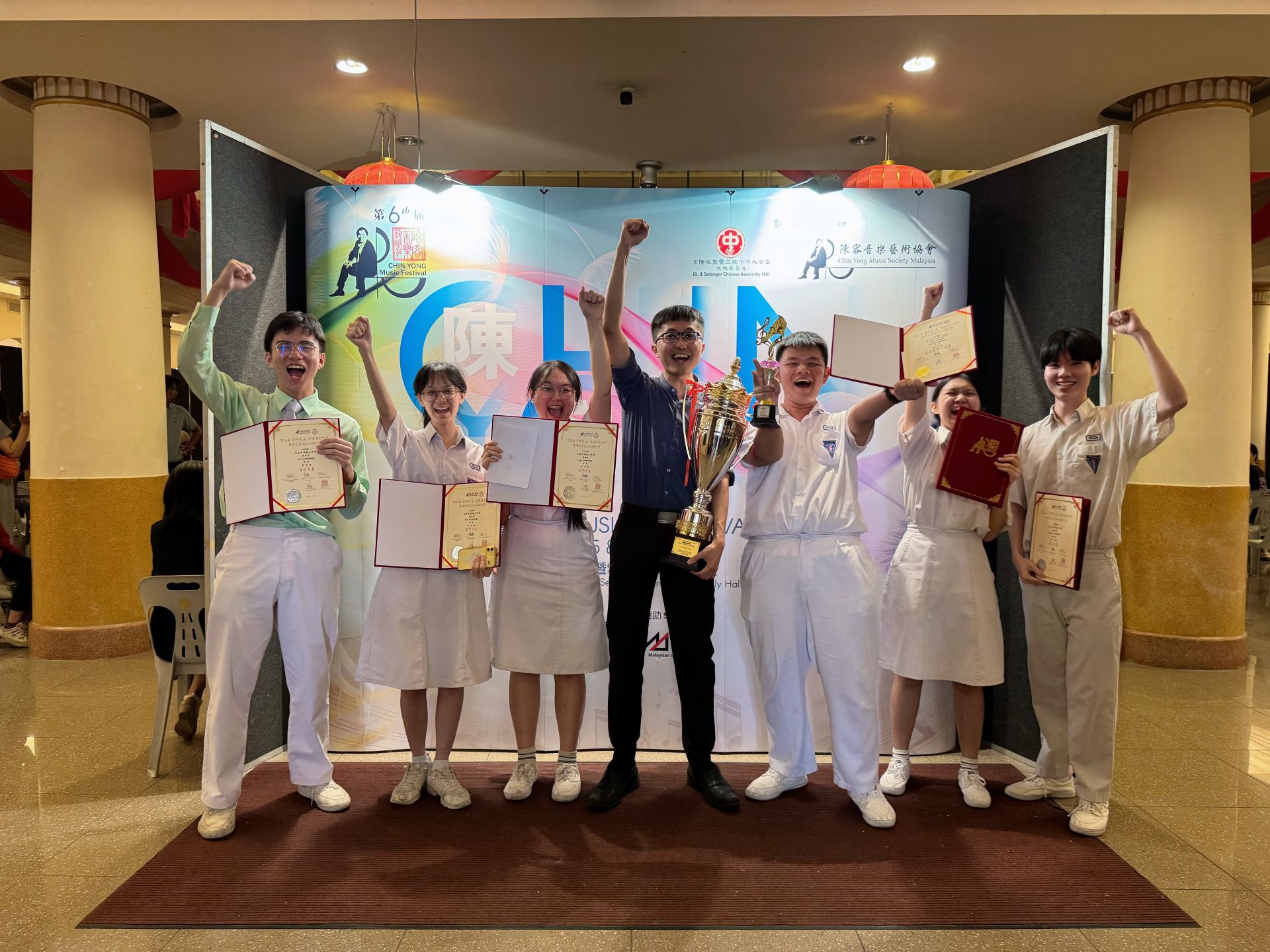 我校合唱团代表于2025年7月5日(星期六),在吉隆坡暨雪兰莪中华大会堂,在合唱团领队老师辛振全老师、合唱团教练林副祥老师及伴奏老师翁绍伟老师的带领下,参加第三届“叶祥发杯”华语文艺歌曲独唱比赛,以卓越表现震撼全场,最终斩获【全场总冠军】,再次展现了我校的非凡实力!