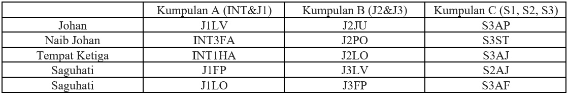 Pelajar-pelajar telah menunjukkan semangat kesungguhan dalam menyiapkan papan buletin yang cantik dan menarik. Penilaian setiap papan buletin kelas pada hari tersebut juga berjalan dengan lancar atas kerjasama guru-guru bahasa Melayu dan bahagian disiplin. Lima buah kelas telah dipilih sebagai pemenang bagi setiap kategori. Pemenang dipilih berdasarkan markah yang diberikan oleh pengadil. Keputusan hiasan papan buletin telah diumumkan melalui laman google classroom sekolah. Pihak sekolah berharap agar setiap murid memperoleh manfaat dan pengalaman daripada pertandingan ini serta dapat lebih memahami negara kita sendiri.