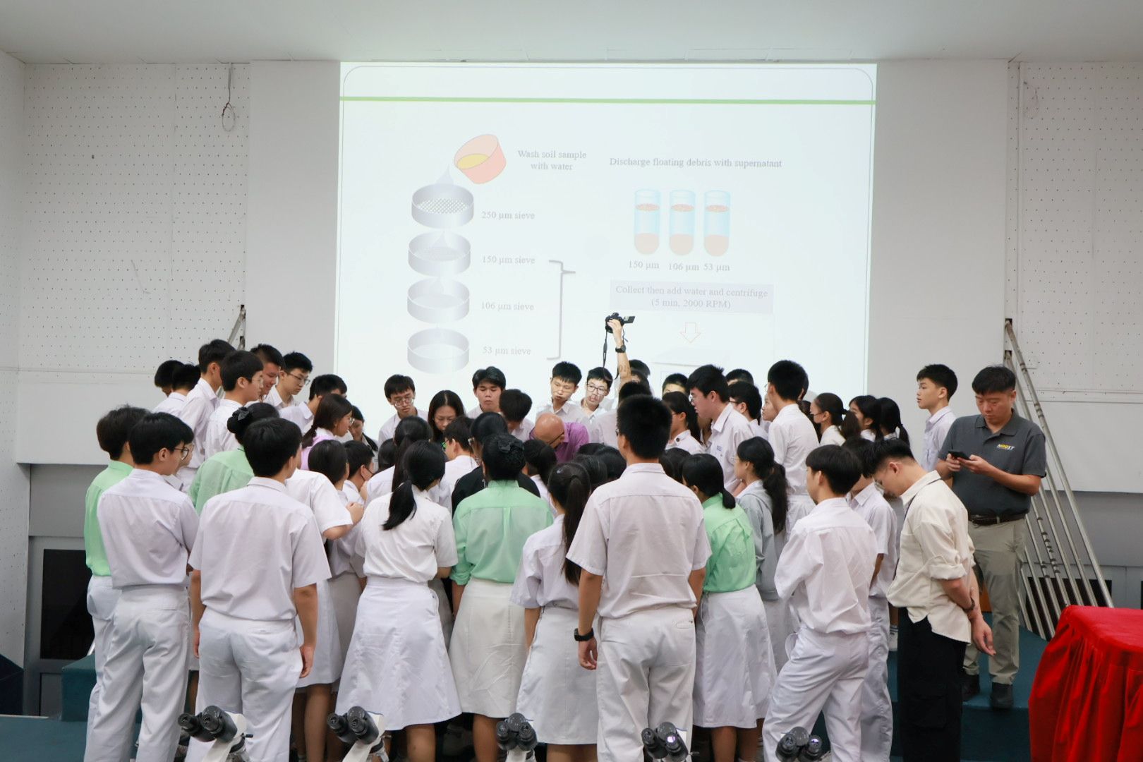 我校很荣幸在2025年9月12日(星期五)邀请到来自台湾的国立屏东科技大学森林系(https://forestry.npust.edu.tw/)的教授兼系主任吴羽婷教授莅临我校,为高一理信和高二理信的学生主讲了一场题为「林木菌根——树联网的秘密与土壤碳汇功臣」的生态学讲座,并现场进行了相关实验演示。吴教授以有趣且深入浅出地方式讲解了菌根菌的基本特性、真菌的亲缘演化及其与净零碳排的关系等等,让我校学生对树联网的奥秘有了更为深入的认识。
