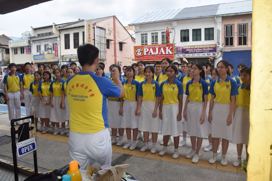 2025年9月7日,巴生老城区在热闹非凡的破蛋节氛围中,再度迎来创意与文化的盛宴。我校高一级与高二级选修课表演艺术班的同学们受邀参与其中,于活动期间呈现了别开生面的街头快闪合唱演出,以青春的歌声为老街区注入活力。