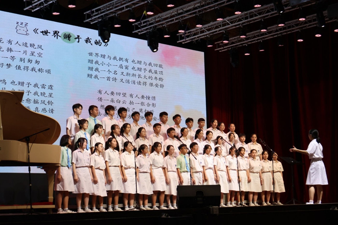 比赛依年级分为甲、乙、丙三组进行。9月10日率先登场的初中丙、乙组,以清澈明亮的嗓音和洋溢的青春朝气,唱响希望初绽的光芒,展现了活力四射的少年风采。次日压轴的高中甲组,则以深沉恢弘的和声,饱含真挚情感地诠释“希望的模样”,让观众深受触动,赢得阵阵热烈掌声。