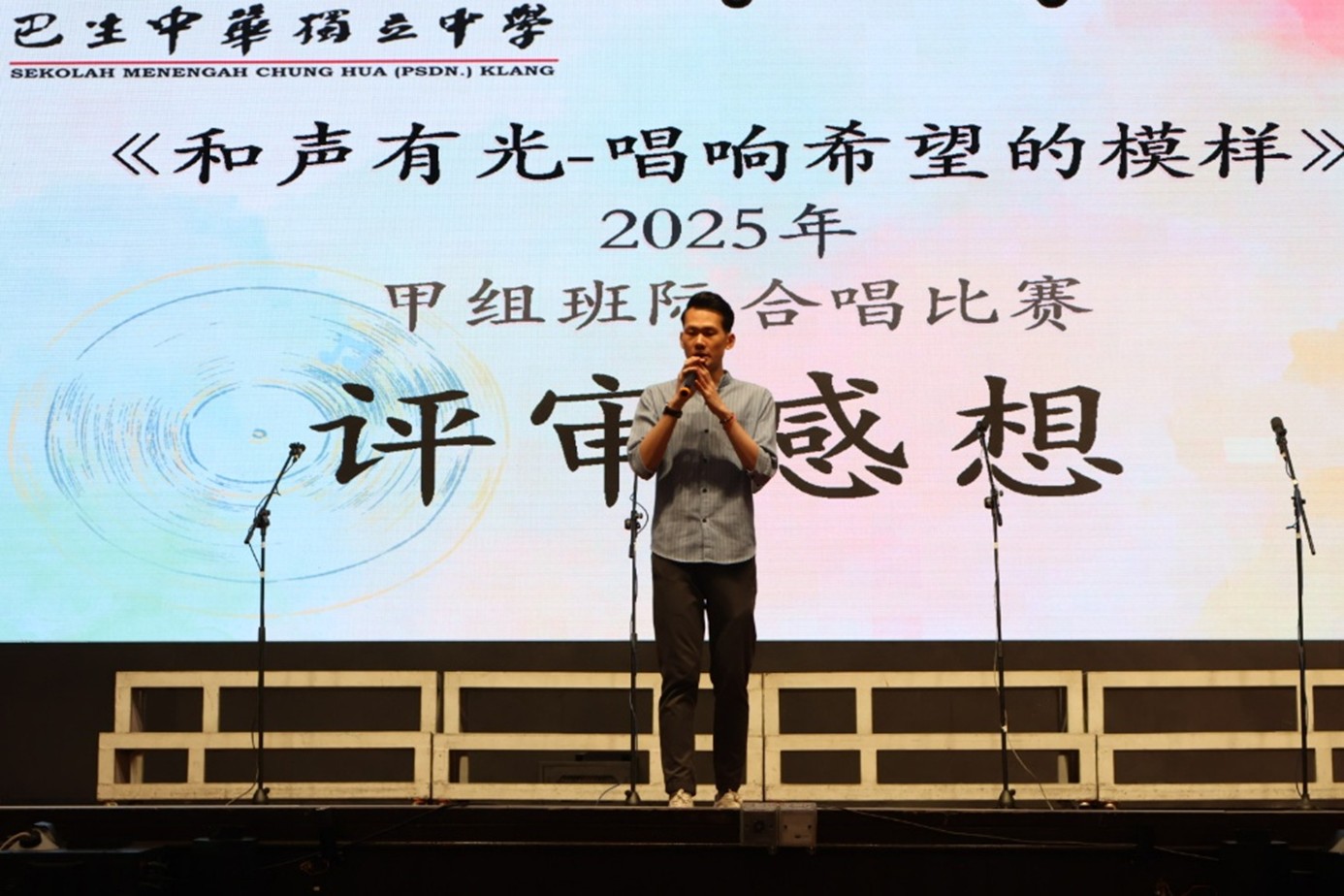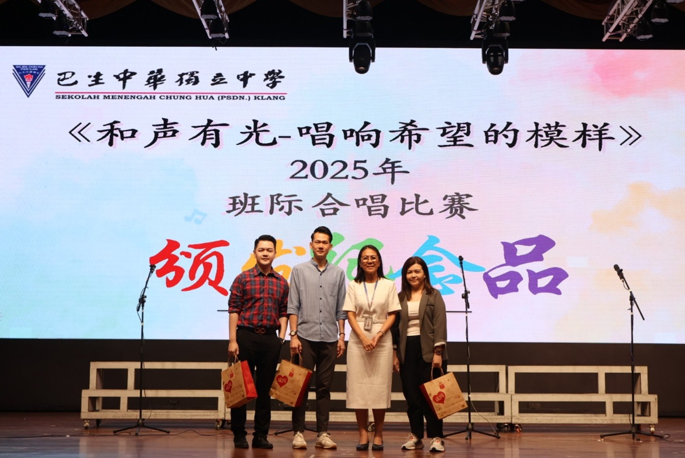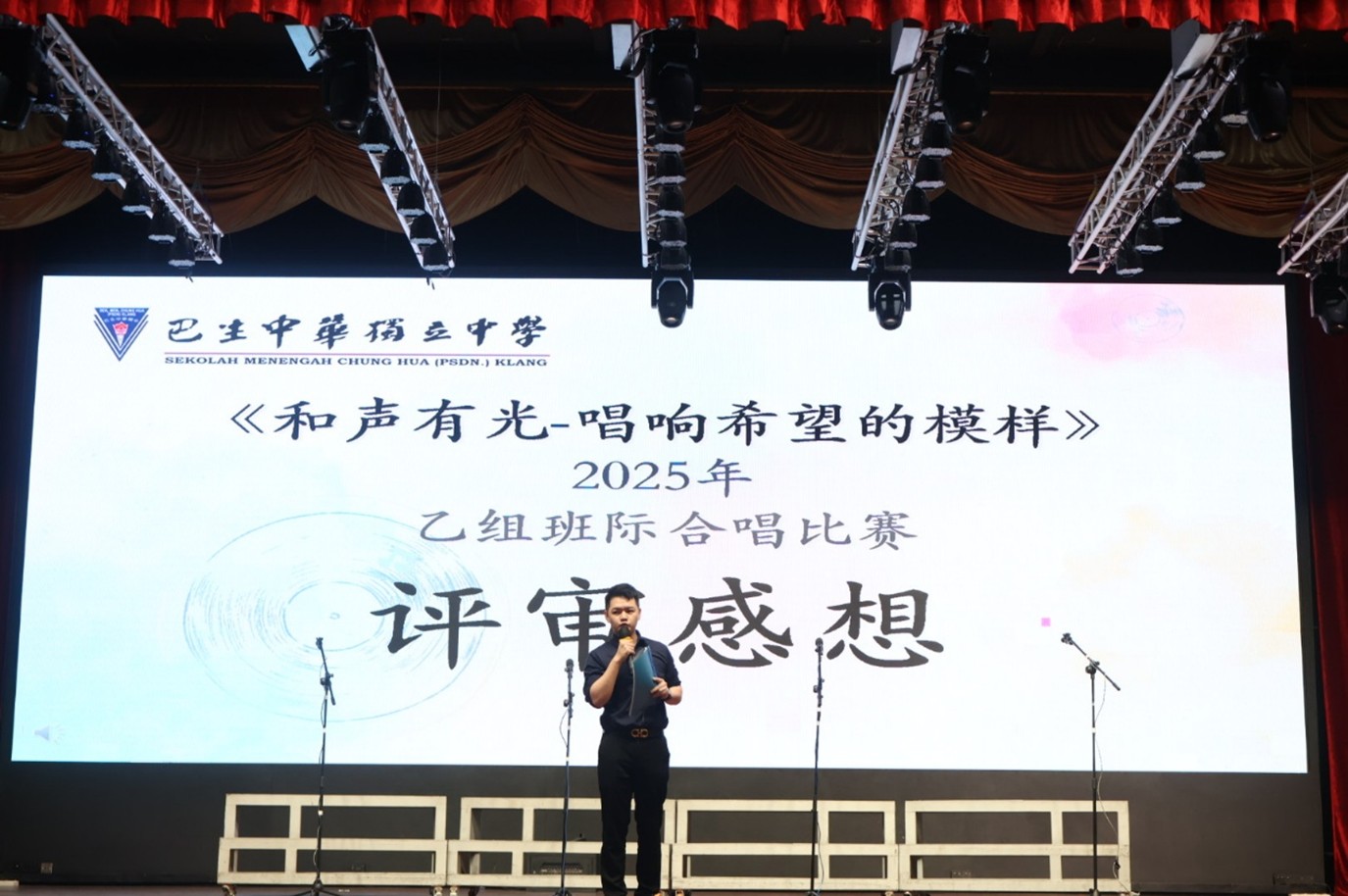 2025年9月10日至11日,我校联课处主催、合唱团主办的《和声有光——唱响希望的模样》班际合唱比赛在全体师生的热切期待中圆满举行。本届赛事在谢凯勇副校长兼联课处主任的鼎力支持,以及合唱团顾问辛振全老师的悉心指导下顺利展开。由合唱团主席范祈迅(S2ST)、副主席张琴诗(S1AJ)与陈思恩(S2ST)担任统筹,带领团队齐心协力,确保比赛有序开展。