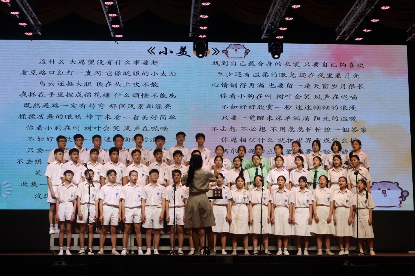 这次班级合唱比赛是由我们合唱团主办的,我担任当天的场控。说真的,压力不小,要注意流程、时间、参赛队伍的进出场,几乎一刻都不能松懈。但看到同学们在台上用心歌唱,台下观众热烈的掌声,我觉得一切都很值得。能在幕后为大家营造一个顺利的舞台,虽然很累,但也很有成就感。这次经历让我学会了临场应变,也更体会到团队合作的重要。