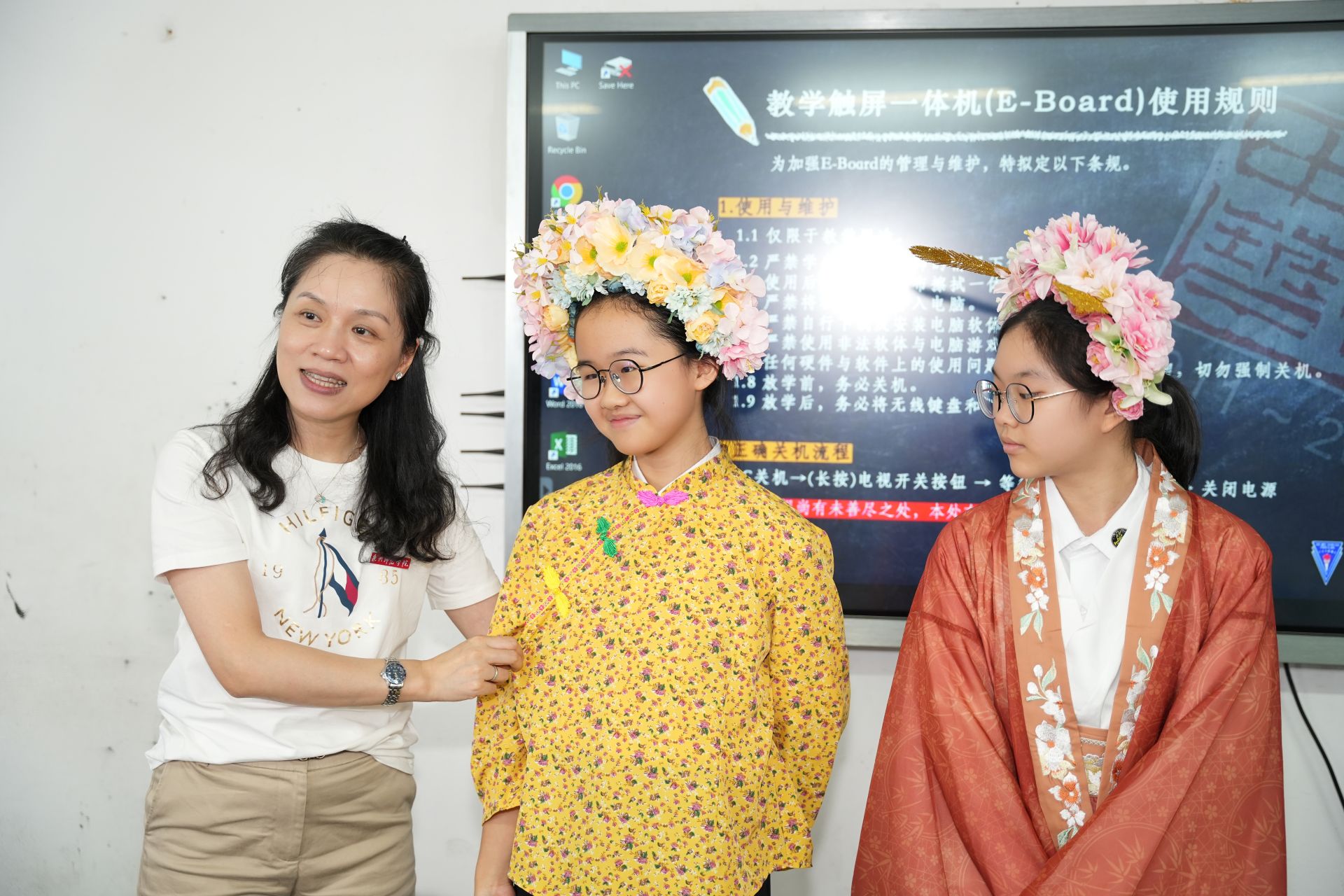 第一天,老师们先是让我们了解中国礼仪;譬如餐前礼仪、仪态礼仪等等……原来,我们早已熟知的日常举止居然蕴含着那么多学问。下午的簪花围更是让全班沸腾——老师们带来了泉州的传统文化非遗“簪花围”的照片,并讲解簪花围的来源和习俗。过后再让我们亲手体验簪花,我们则用花模仿制作。当我把簪花围戴在自己的头上时,突然明白了老师说的“今生簪花,世世漂亮”。