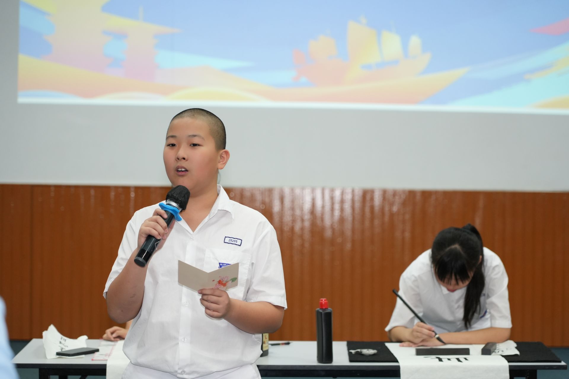 在结业仪式上,我们带来了诗词朗诵和合唱《茉莉花》以及书法表演。台上传来朗诵声的那一刻,让这四天的学习成果得到了最动人的诠释。我们学着老师教导的读法,用昂扬顿挫的语气读着文章,纸上的文字变成了鲜活的画面。