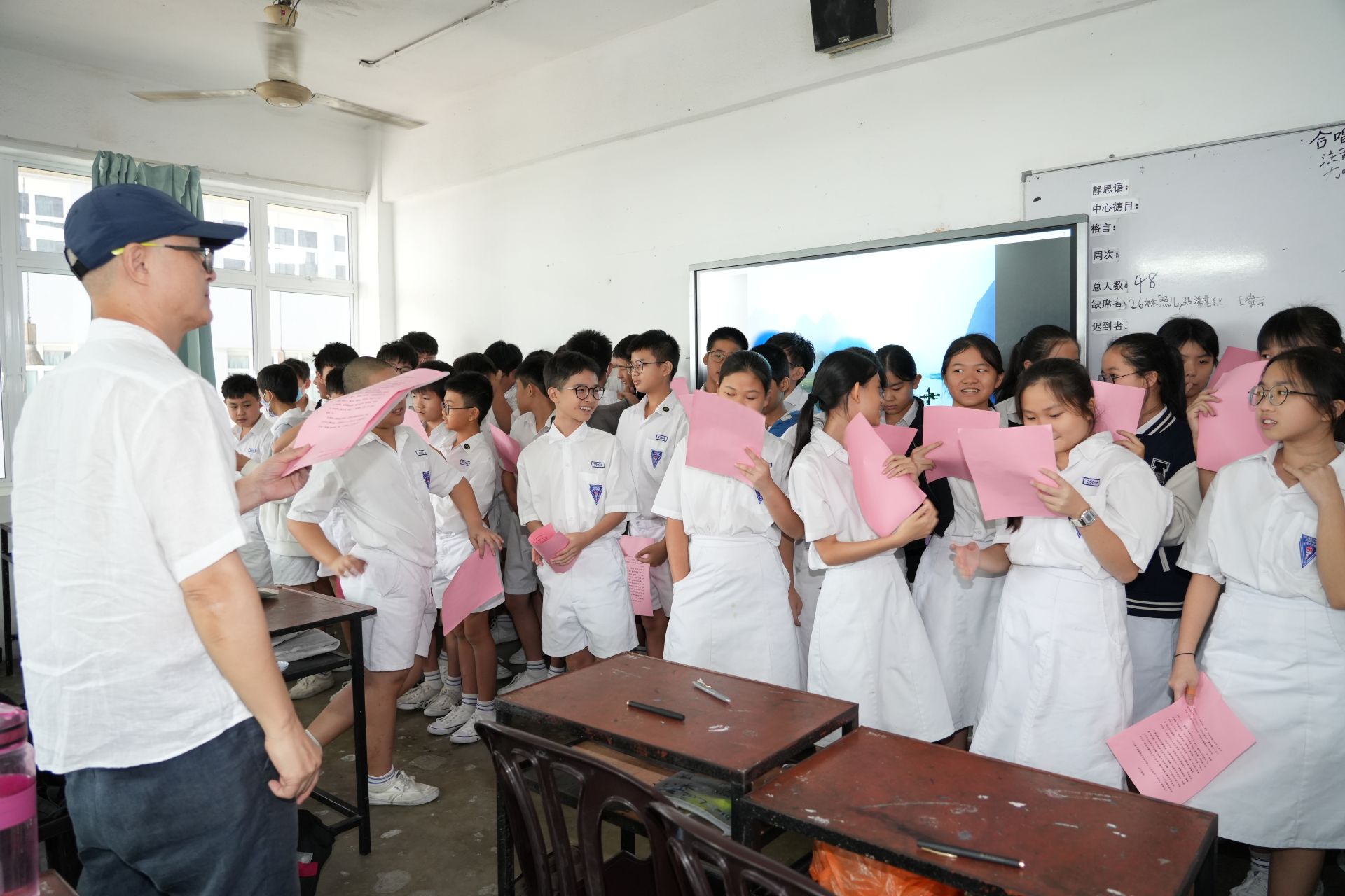 第四天的课堂上,老师带领我们学习歌唱《茉莉花》,这一次的旋律与音调有所变化,让大家在似曾相识的旋律中体会到新的韵味与表达。同时,全体同学齐声念诵与桂花相关的词句,彼此配合,营造出浓厚的文化氛围,也为即将到来的结业仪式做好了准备。