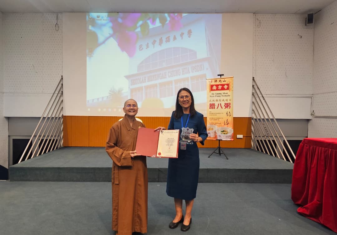 配合腊八节的到来,佛光山南方寺监寺觉文法师一行在2026年1月26日(星期一)到我校派发腊八粥,并向师生介绍腊八节与腊八粥的文化由来,让学生在品尝传统美食的同时,也进一步认识中华传统节日的深层意义。