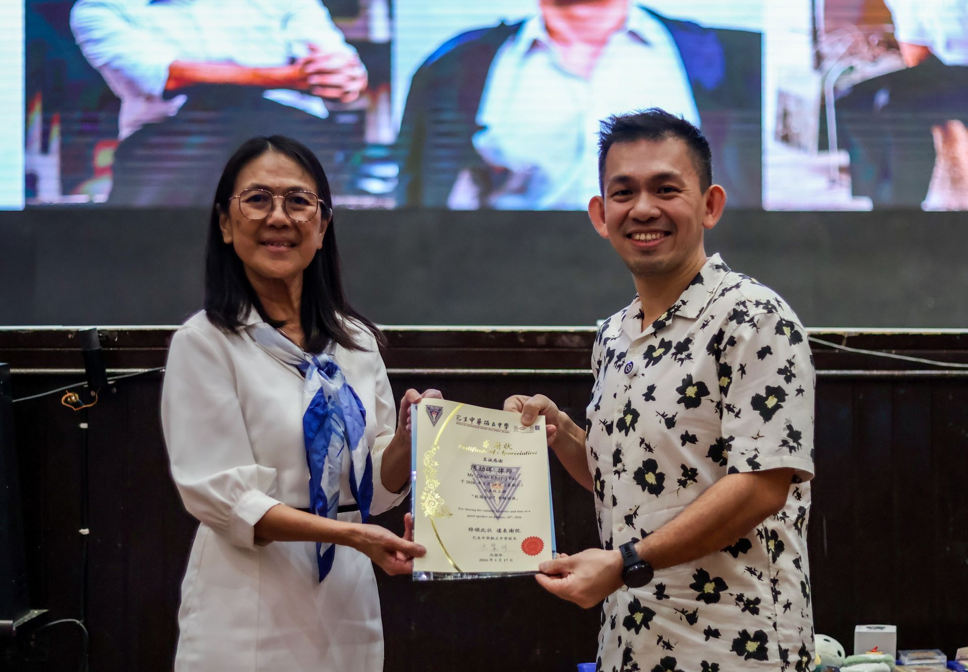 为持续深化校园安全教育,除了教职员们扮演举足轻重的角色以外,培育学生正确的法律意识与自我保护观念亦相当重要,故我校于 2026年1月20日(星期二)再度邀请陈劲晖律师到校,为初中生与高中生分别主讲两场主题讲座。此次活动由训导处统筹安排,作为校园安全教育的重要延伸。