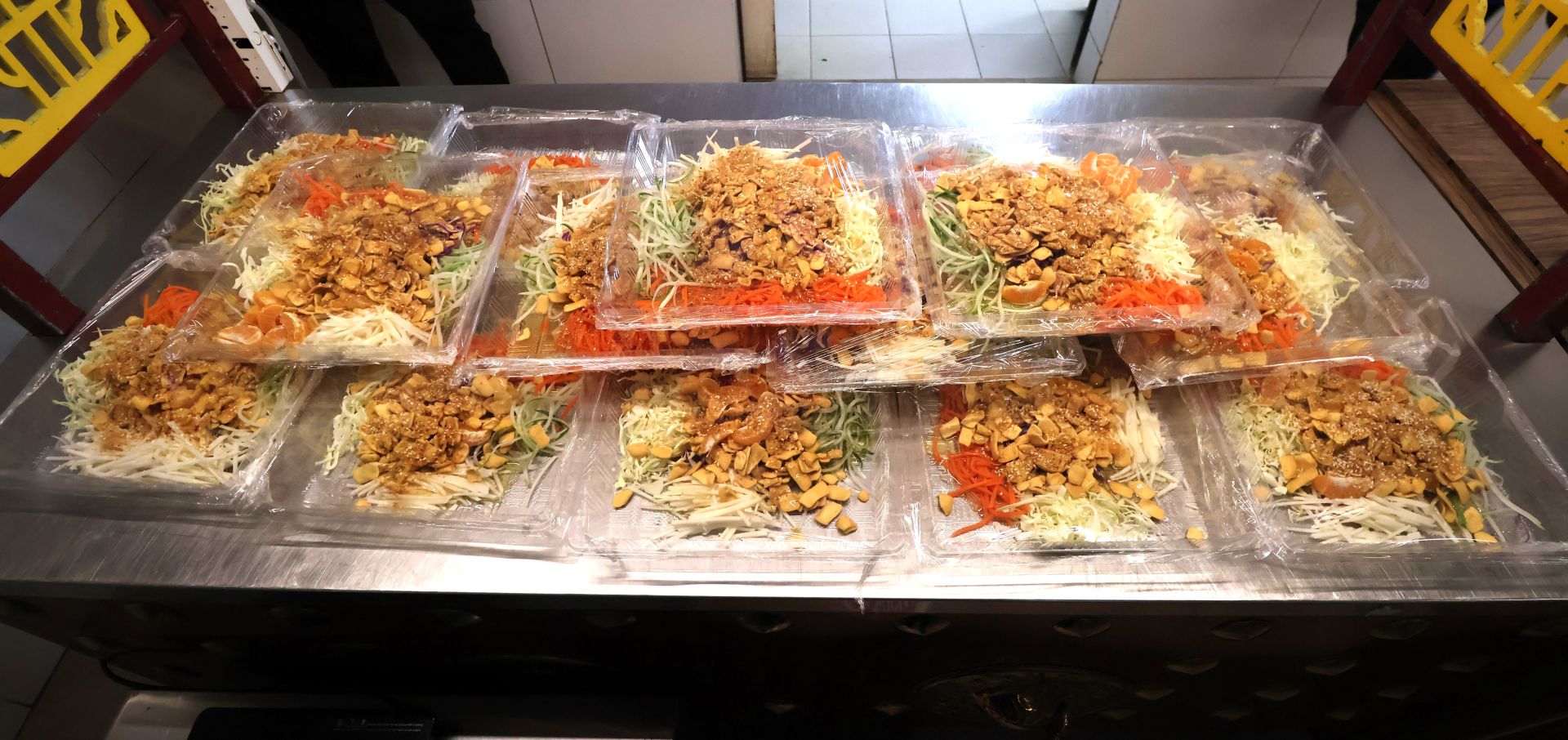 接着进行象征吉祥如意的捞生活动。在主持人带领下,嘉宾与师生一同喊出吉祥祝语,寓意在新的一年里 一帆风顺、步步高升、十全十美,现场气氛热烈欢腾。