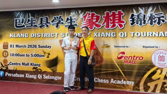 我校棋艺社于2026年3月1日假 Centro Mall 参加由雪州象棋公会及楚汉棋院所举办的2026年巴生县学生象棋锦标赛。本次活动中,我校棋艺社的九位同学参加了这项比赛。经过一番激烈的对弈后,李桐陞同学及李禹城同学成功获奖。
